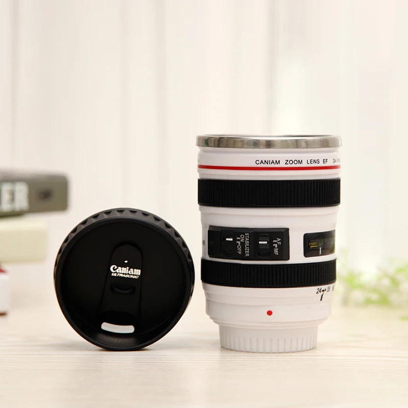 Stainless Steel Camera Ef24-105Mm White Black Coffee Mugs Coffee Lens Mug Caneca