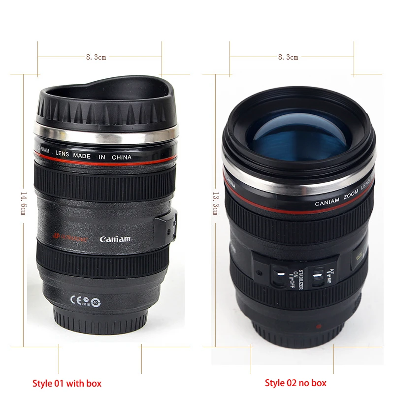 Stainless Steel Camera EF24-105mm White Black Coffee Mugs Coffee Lens Mug Canecas Tazas Vaso Caf Coffee Cups Creative GiftCapacity: about 301- 400ml.